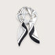 Smukt hvidt og sort satintørklæde med striber og blomstermønster. Mønsteret ændres, alt efter hvordan du folder tørklædet, så du kan vælge mellem striber og blomster eller en smuk kombination.