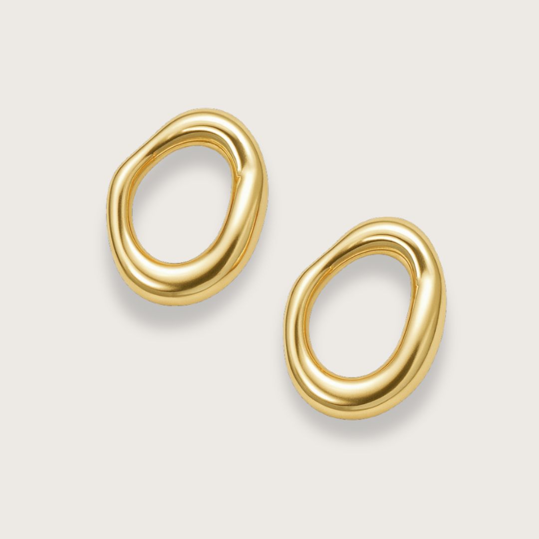 De smukke ovale øreringe er fremstillet i rustfrit stål med 18 karat forgyldning og PVD-belægning. Ørestikkerne tåler både vand, sved og parfume uden at miste glans eller farve.