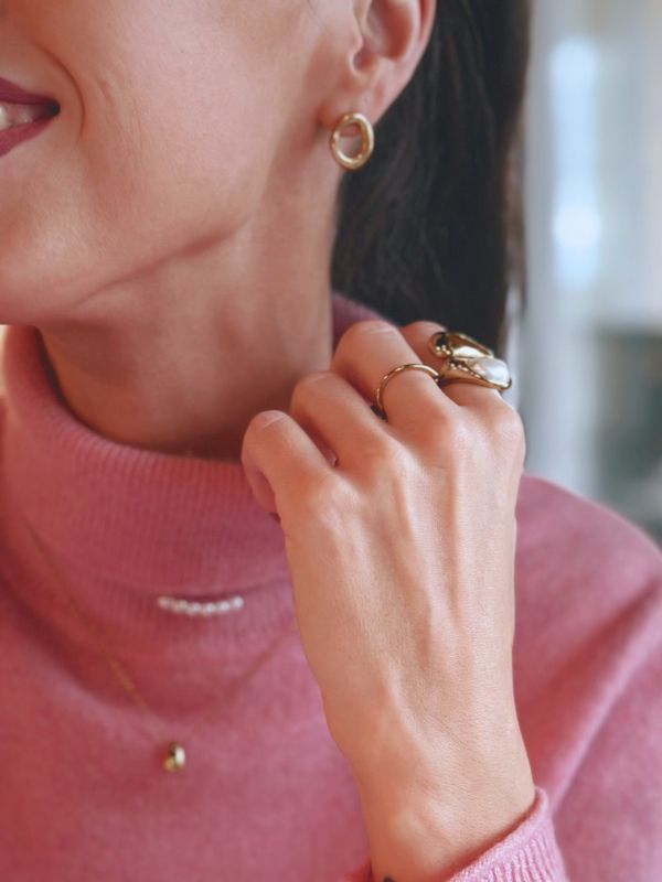 De små Aude-ørestikkere har en blød og bølget oval form, der fanger lyset på en elegant måde og tilfører et lille strejf af "old money"-looket til dit outfit.