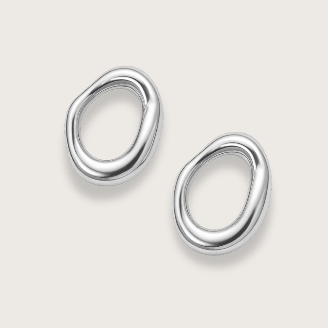 Små ovale ørestikkere i sølvfarvet rustfrit stål.