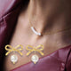 Vores smukke guldbelagte Noë perlehalskæde og Bijou sløjfeøreringe med perlevedhæng er to elegante og feminine smykker, der komplimenterer hinanden perfekt.