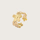 Denne justerbare, guldfarvede ring er lavet i rustfrit stål og udformet som en række små blomster, der slynger sig yndefuldt om fingeren. Designet balancerer det feminine og det naturlige og giver ringen et romantisk og poetisk udtryk med bohemeglimt.