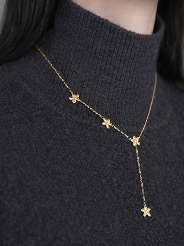Smuk 18k guldbelagt blomsterhalskæde i populært Y-design.