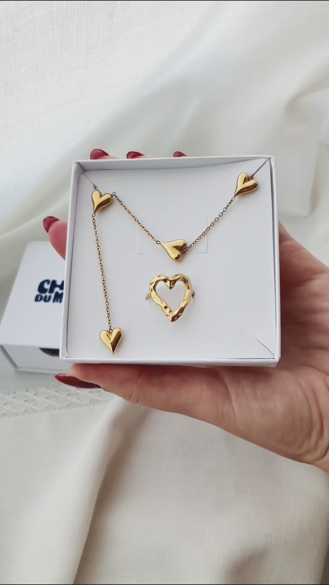 Inès smykkesæt – Guldbelagt Hjertehalskæde og hjertearmbånd
