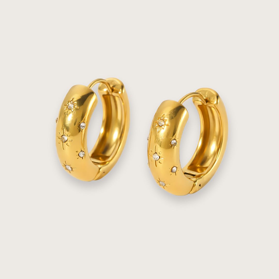 De små zirkonstjerner giver øreringene et eksklusivt udtryk, og det klassiske design passer til alle lejligheder.