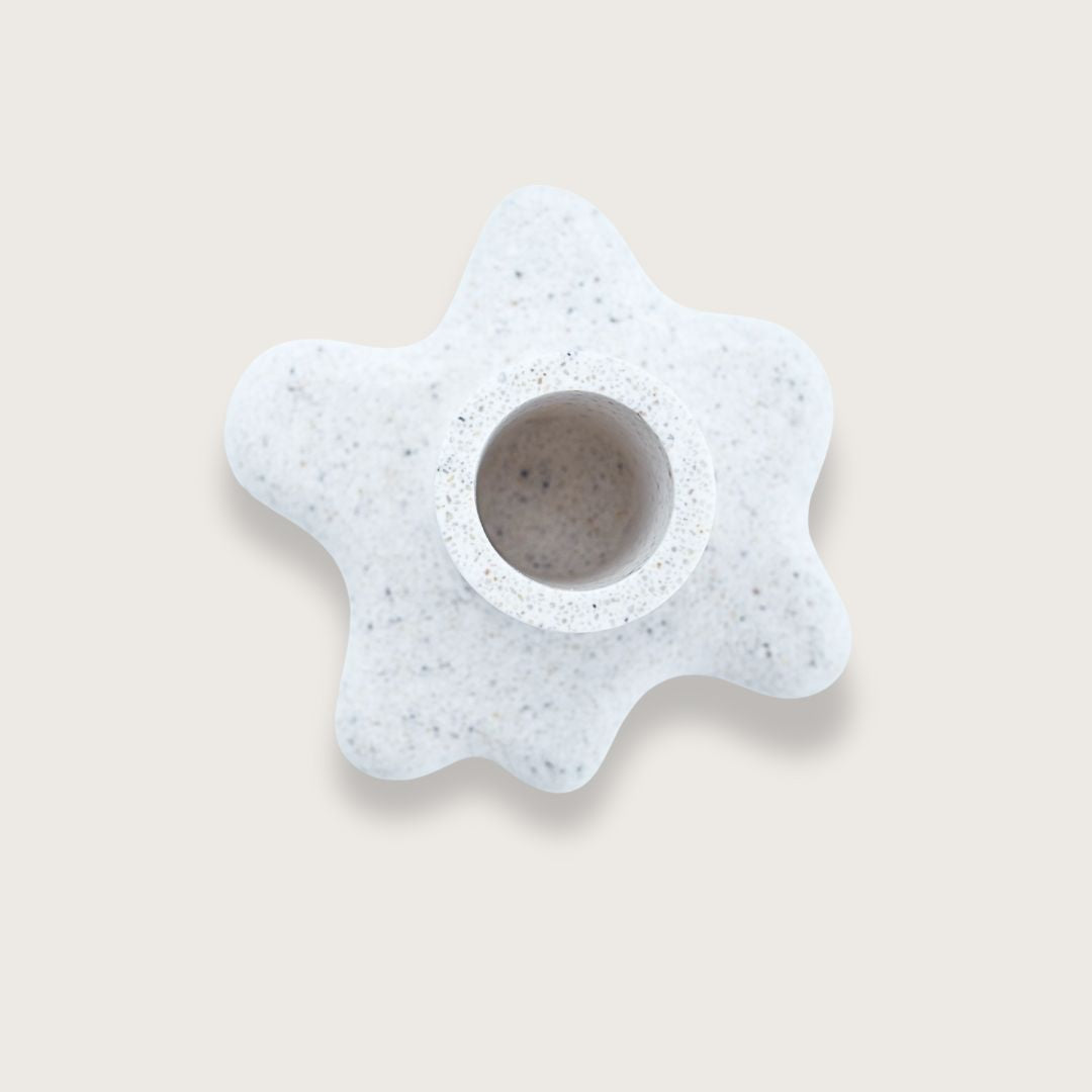 Stemningsfuld og stilren lysestage i håndstøbt Jesmonite. Pluie-lysestagen kombinerer det håndlavede udtryk med nordisk enkelthed.