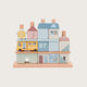 Denne særligt udvalgte stableby består af 15 bygninger og 3 baser, som barnet kan sætte sammen til sin egen miniatureverden. De bløde pastelfarver og rene former gør sættet til et roligt indslag i legen – og en dekorativ detalje på børneværelset.