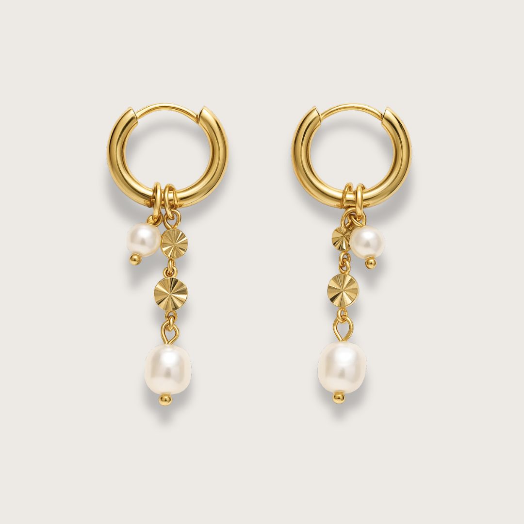 Små elegante hoop-øreringe med dobbelt perlevedhæng.