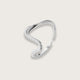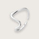Denne ring har et blødt bølgemønster, som giver den et roligt og elegant udtryk. Designet er enkelt, men alligevel bemærkelsesværdigt, og passer både alene og i kombination med andre smykker. Den let bølgede form gør ringen behagelig at bære og elegant at se på.