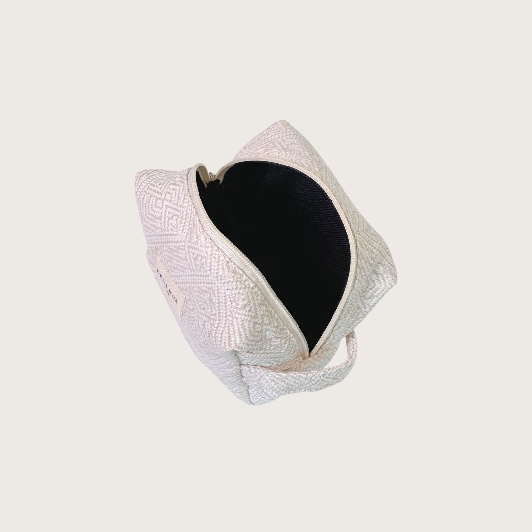 Tasken er fremstillet i Spanien i små oplag, og det lækre stof og enkle design gør den til en favorit til både weekendture og hverdagsbrug. Perfekt som makeuptaske eller rejsetoilettaske.