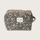En blød, rummelig toilettaske fra De la Mur i kraftigt jacquardvævet bomuldsstof med sildebensmønster i brunlige nuancer.