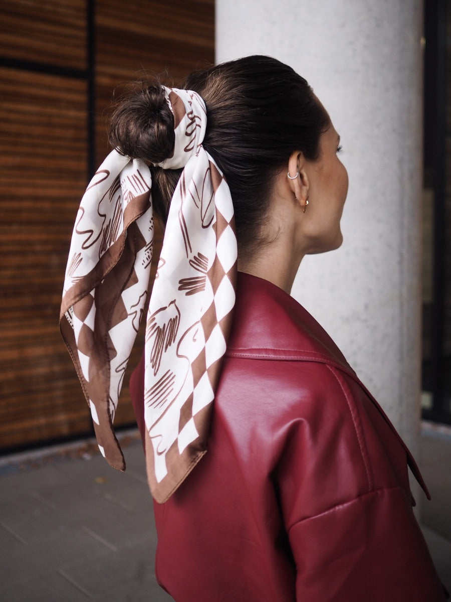 Klassiske, kvadratiske tørklæder kan bruges på utallige måder. Bind tørklædet om håret, brug det som en smuk detalje på tasken, som pandebånd, som klassisk tørklæde om halsen, eller gør lidt ekstra ud af frisuren ved at binde tørklædet om din knold eller hestehale.