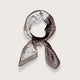 Nora-tørklædets smukke franskinspirerede mønstre bindes sammen af farveholdningen i brun og beige. Den diagonale opdeling af mønstrene giver mulighed for mange forskellige udtryk, alt efter hvordan man vælger at folde og binde tørklædet.