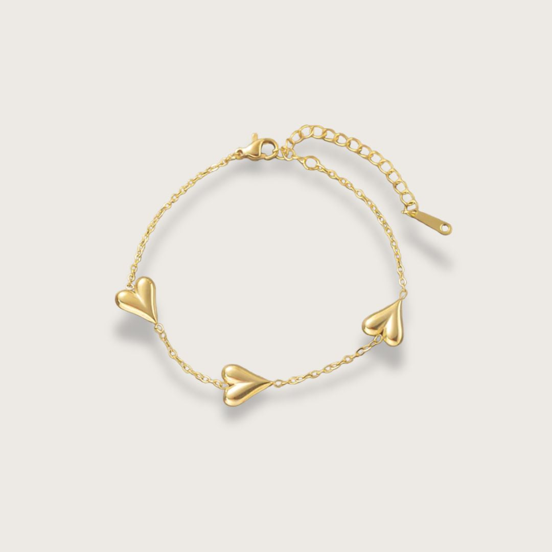 Vores smukke guldbelagte Inès hjertehalskæde og hjertearmbånd samlet i ét skønt smykkesæt.