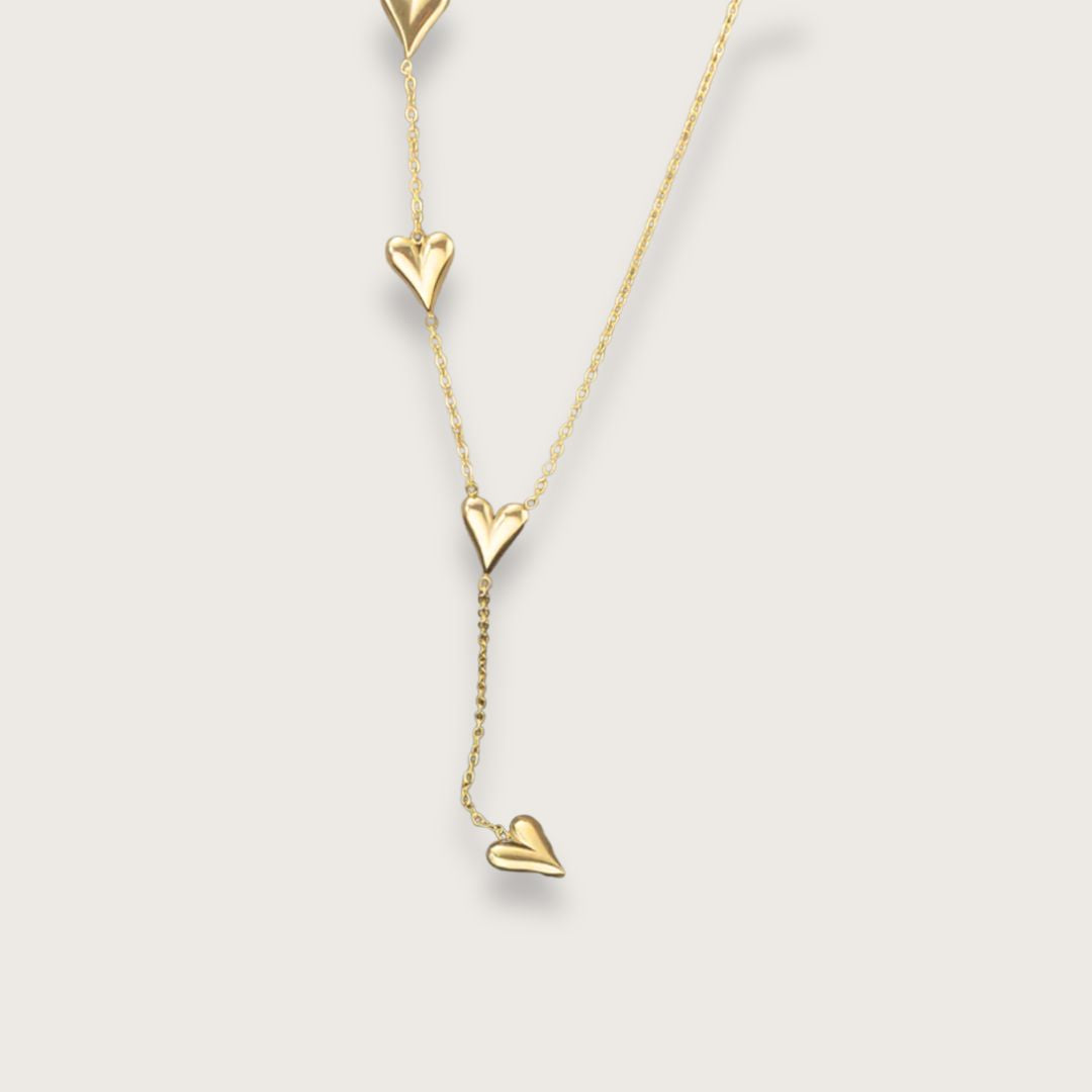 Varebeskrivelse: Smuk guldbelagt halskæde og armbånd med elegante hjerter.